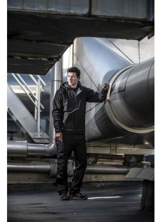 Wiatro- i wodoodporne spodnie o doskonałej oddychalności. Klejone szwy. Trzywarstwowy materiał VentAir zapewnia suchość ciała przez cały dzień. Elastyczny pas ze sznurkiem. Pojemne kieszenie boczne po obu stronach zapinane na zamek, zakryte patką, aby zapobiec dostawaniu się wody. Zamki wzdłuż nogawek ułatwiające ubieranie i rozbieranie, zakryte patką (35 cm w rozm. L). Regulowane nogawki zapinane na rzep.