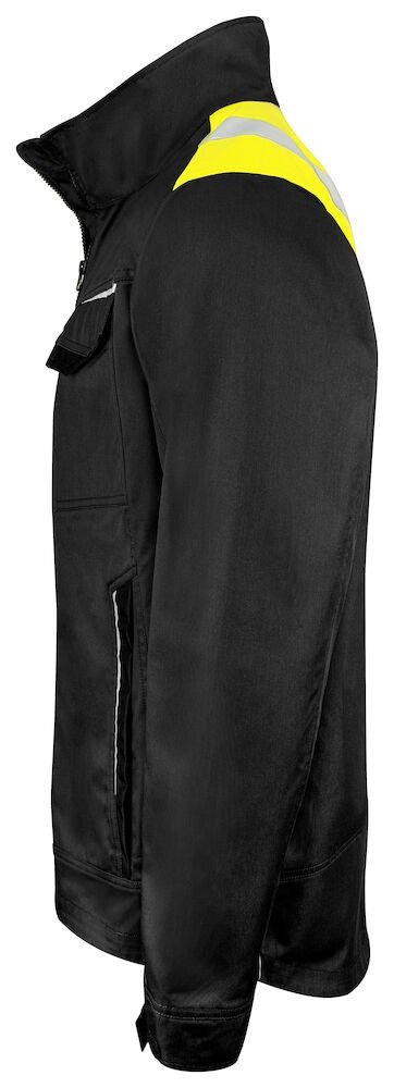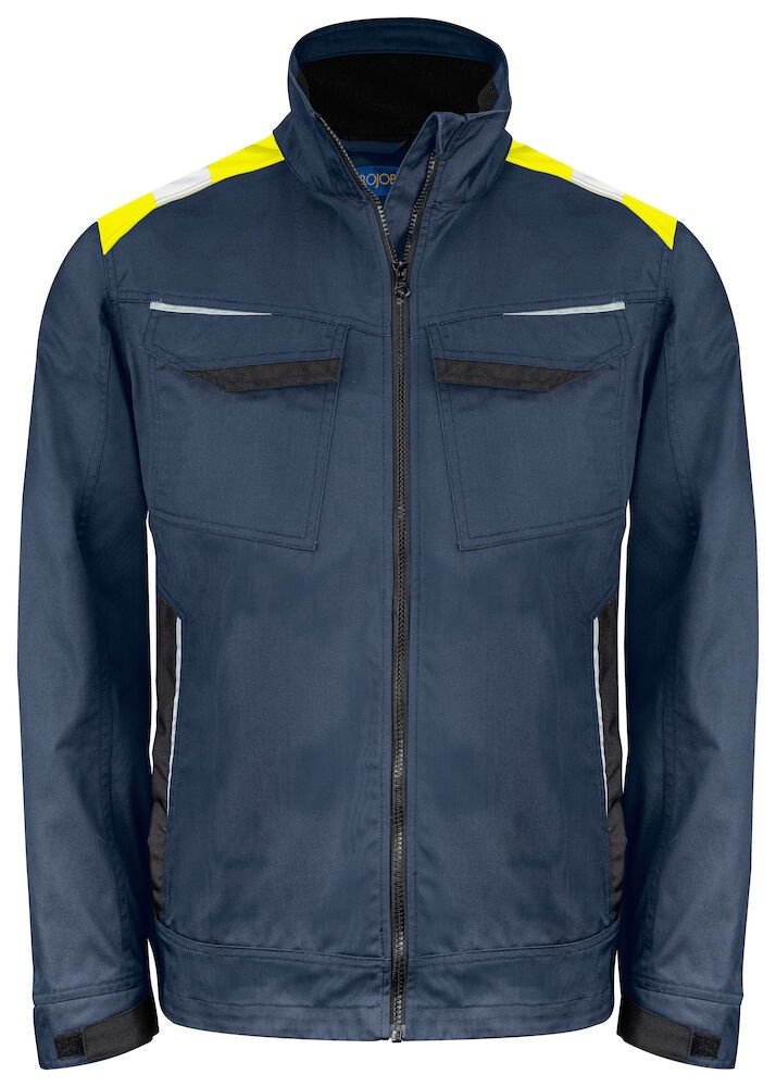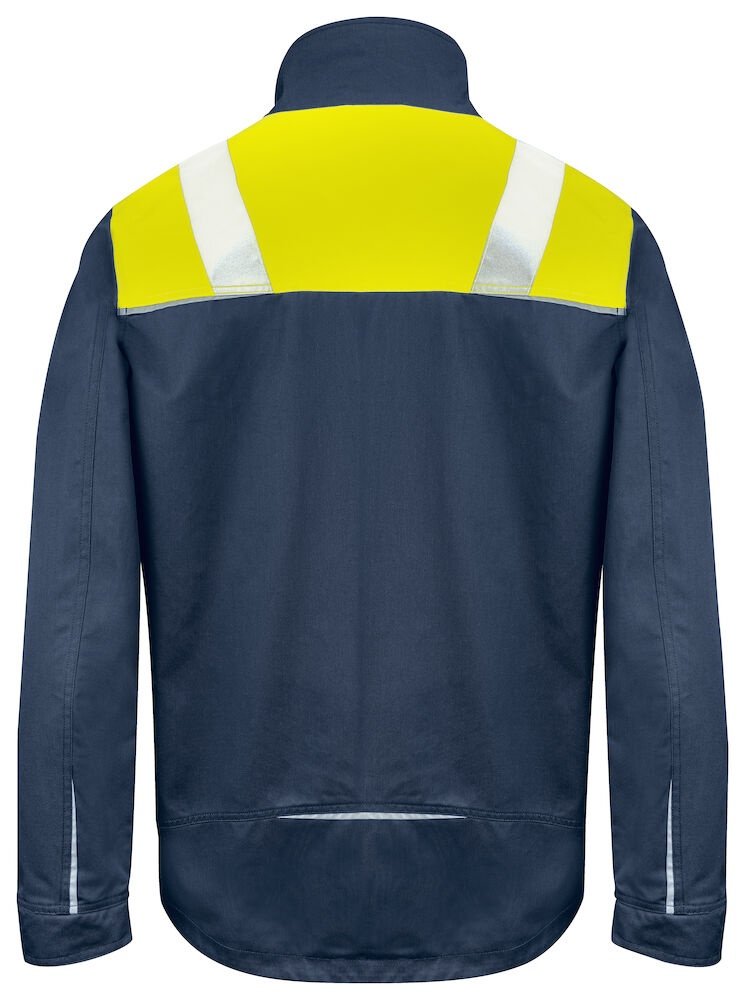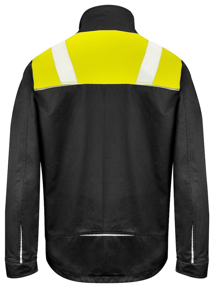Kurtka serwisowa z zamkiem błyskawicznym do kołnierza z przodu, z wewnętrzną osłoną przeciwwiatrową i osłoną podbródka zapobiegającą przeciągom i otarciom. Kieszenie na piersi po obu stronach, z lewej strony wewnętrzny uchwyt na identyfikator. Kieszenie boczne zapinane na zamek. Przestronne kieszenie wewnętrzne, dodatkowo jedna kieszonka na telefon zapinana na rzep. Przedłużony tył. Regulowane mankiety za pomocą rzepów. Fluorescencyjny materiał i odblaski na ramionach, a także odblaskowe lamówki z tyłu i na przednich kieszeniach dla lepszej widoczności.