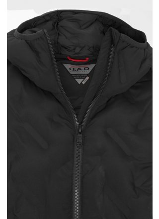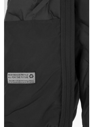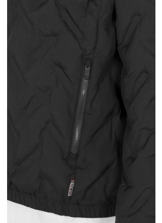 Lekka kurtka ze wzorem zgrzewanych szwów. Wykonane z certyfikowanego poliestru pochodzącego z recyklingu. Kurtka jest poddana obróbce końcowej Bionic Finish Eco, która zapewnia efekt hydrofobowy. Kaptur z obszyciem. Pełny zamek błyskawiczny biegnący w górę kołnierza i przednie kieszenie z ozdobnymi widocznymi zamkami błyskawicznymi. Elastyczny dół i mankiety. Model lekko zakrzywiony.
