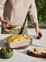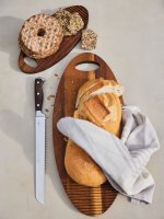 Deska do krojenia z serii Ante wykonana z ciemnego, solidnego drewna akacjowego. Deska ma owalny kształt oraz pięknie rzeźbione paski. Kształt deski sprawia, że Ante jest wyjątkowa, idealna do eksponowania lub serwowania dań. Deska do krojenia Ante jest dostępna w dwóch rozmiarach, jest wykonana ręcznie, dlatego każ∂y egzemplarz jest jedyny w swoim rodzaju. Warto wiedzieć, że drewniane deski do krojenia są trwalsze, a także delikatniejsze dla noży.