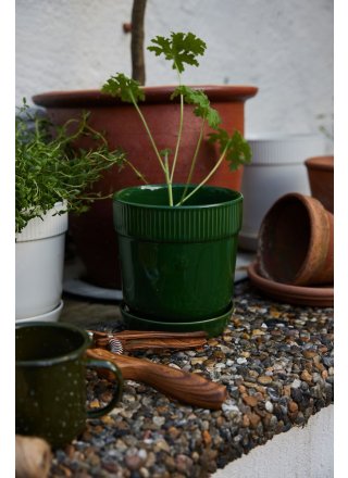 Doniczka Elise z podstawką łączy w sobie to, co najlepsze. Design, kolor, kształt oraz praktyczne dodatki takie jak otwory drenażowe oraz podstawka, która podwyższa doniczkę. Elise ma miękki, zaokrąglony kształt, wzór u góry z prostymi liniami oraz jest wykonana z kamionki. Doniczka jest przyozdobiona charakterystycznym logo Sagaform w środkowej części. Doniczki Elise są dostępne w pięknych, bliskiej naturze kolorystyce oraz dwóch rozmiarach. Idealny dodatek dla każdego domu.