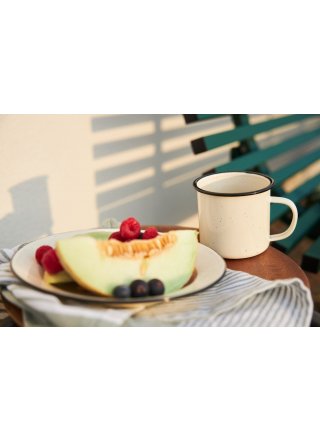Każdy, kto spędza czas na łonie natury, potrzebuje własnego emaliowanego kubka Doris. Jest lekki, wytrzymały i wielofunkcyjny. Używaj go do ulubionych napojów lub gorącego posiłku. Doris jest idealny na piknik, ognisko lub na rejs łodzią. Bardzo wytrzymała seria, z której mogą korzystać również dzieci. Seria Doris ma dwa warianty kolorystyczne: beżowy oraz leśna zieleń z ciekawym efektem małych plamek.