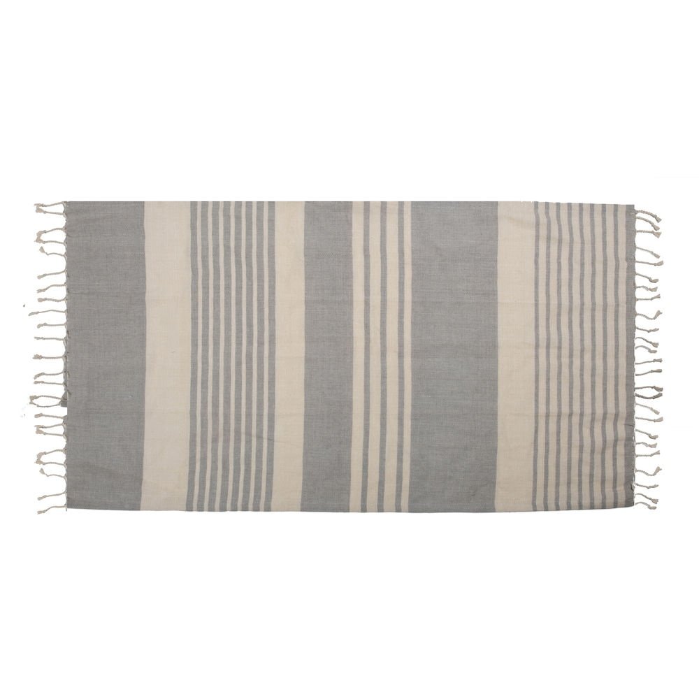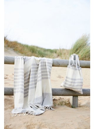 Ella Hamam to ponadczasowy, szybko schnący, ręcznik z cienko tkanej bawełny organicznej. Idealny do okrycia po kąpieli. Wszystkie ręczniki ozdobione są klasycznymi i charakterystycznymi paskami Sagaform w różnych wzorach i trzech zestawieniach kolorystycznych: zielonym, niebieskim i beżowym. Frędzle na końcach. Certyfikat GOTS. Dzięki swoim rozmiarom możesz wykorzystać ten ręcznik także jako koc czy obrus.