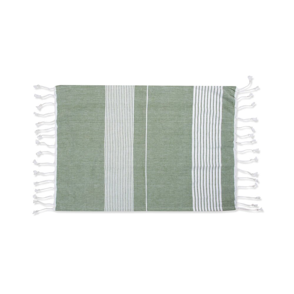 Ella Hamam to ponadczasowy ręcznik z cienko tkanej bawełny organicznej. Wszystkie ręczniki ozdobione są klasycznymi i charakterystycznymi paskami Sagaform w różnych wzorach i trzech zestawieniach kolorystycznych: zielonym, niebieskim i beżowym. Frędzle na końcach. Certyfikat GOTS.