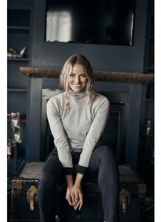 Lekki, dziany golf odpowiedni jako formalny, biznesowy strój, który nigdy nie wychodzi z mody. Dzianina wykonana jest z wysokiej jakości przędzy z wełny Merino, która jest określana jako „błyszcząca jak jedwab, miękka jak kaszmir”.