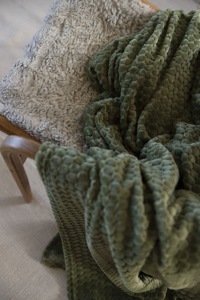 Maja to duży, miękki i luksusowy koc polarowy, z pięknym wzorem przypominającym śnieg lub mech. Koc Maja dostępny w dwóch kolorach białym i zielonym.