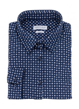 Koszula z najwyższej jakości, zwartej bawełny o długich włóknach, zapewniającej miękkość i wygodę, zupełnie jakbyś nosił t-shirt. Zastosowanie wysokiej jakości przędzy dwuwarstowej bawełny kompaktowej oraz miękkiej obróbce, nadaje koszuli luksusowy wygląd, jedwabisty dotyk oraz niweluje konieczność używania żelazka. Po prostu wypierz koszulę, powieś do wyschnięcia i załóż.