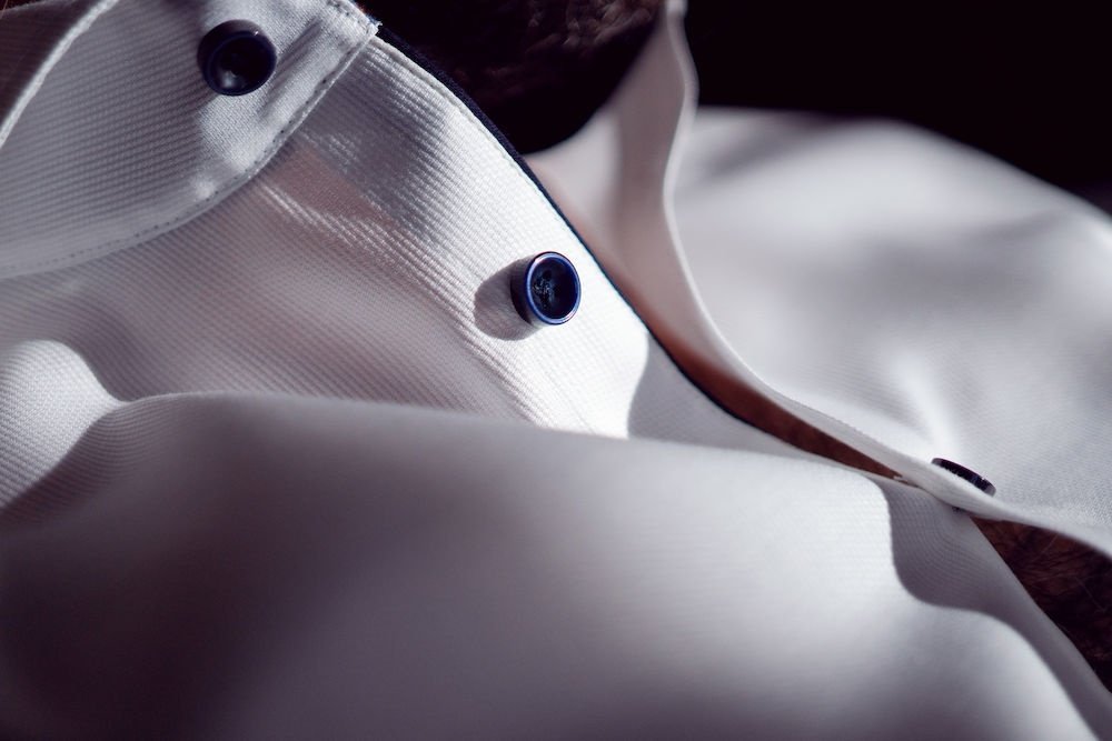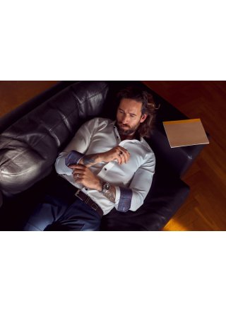 Koszula będąca połączeniem kołnierza typu cut-away z kontrastowym materiałem typu Paysley dają solidny efekt. Styl koszuli podkreśla kontrast między mocnym białym kolorem, a bardziej dyskretnym, luksusowym granatowym kolorem tkaniny. Dostosujesz stylizację do każdej sytuacji, ubierz koszulę z jeansami lub z marynarką garniturową i trampkami, na spotkanie do pracy lub na wyjście na miasto z przyjaciółmi.