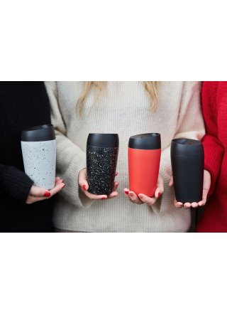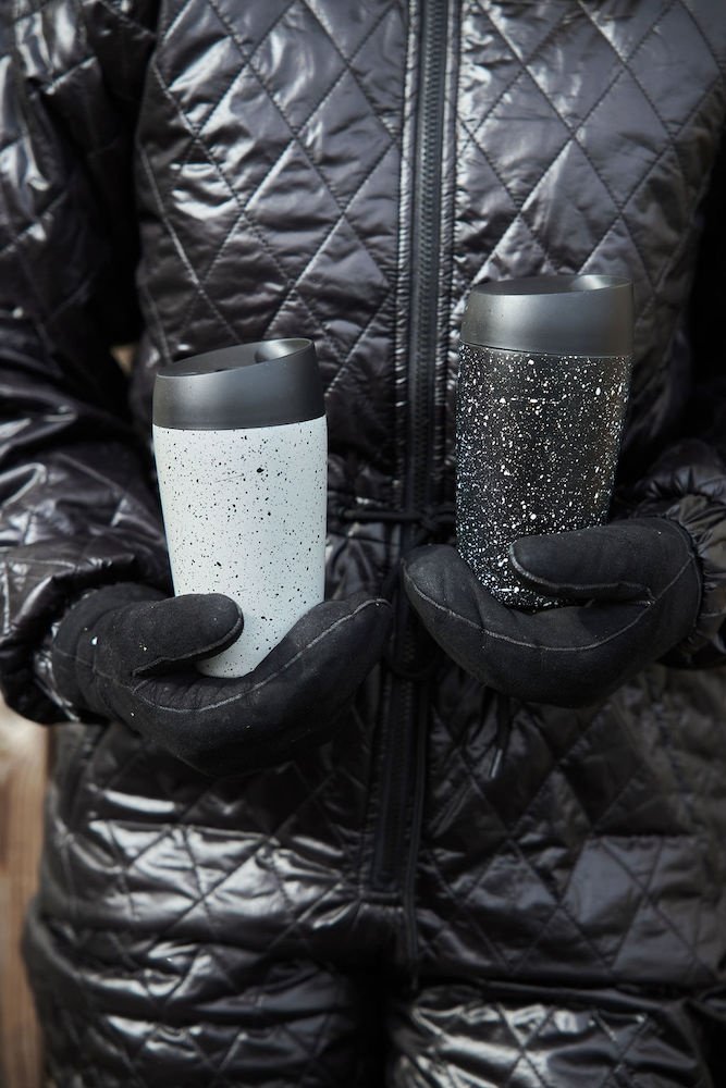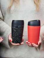 Kubek Travel z zamknięciem o wzorze białe plamki na czarnym tle, to kubek podróżny, który oboje kochamy za różnorodność, dobór kolorów i konstrukcję. Seria produktów, których celem jest uproszczenie codzienności. Kubek mieści 24 cl i można go łatwo umieścić pod ekspresem do kawy w celu uzupełnienia. Travel ma podwójne ścianki, aby napój dłużej utrzymać temperaturę wewnątrz oraz nie przecieka dzięki inteligentnej funkcji blokowania.