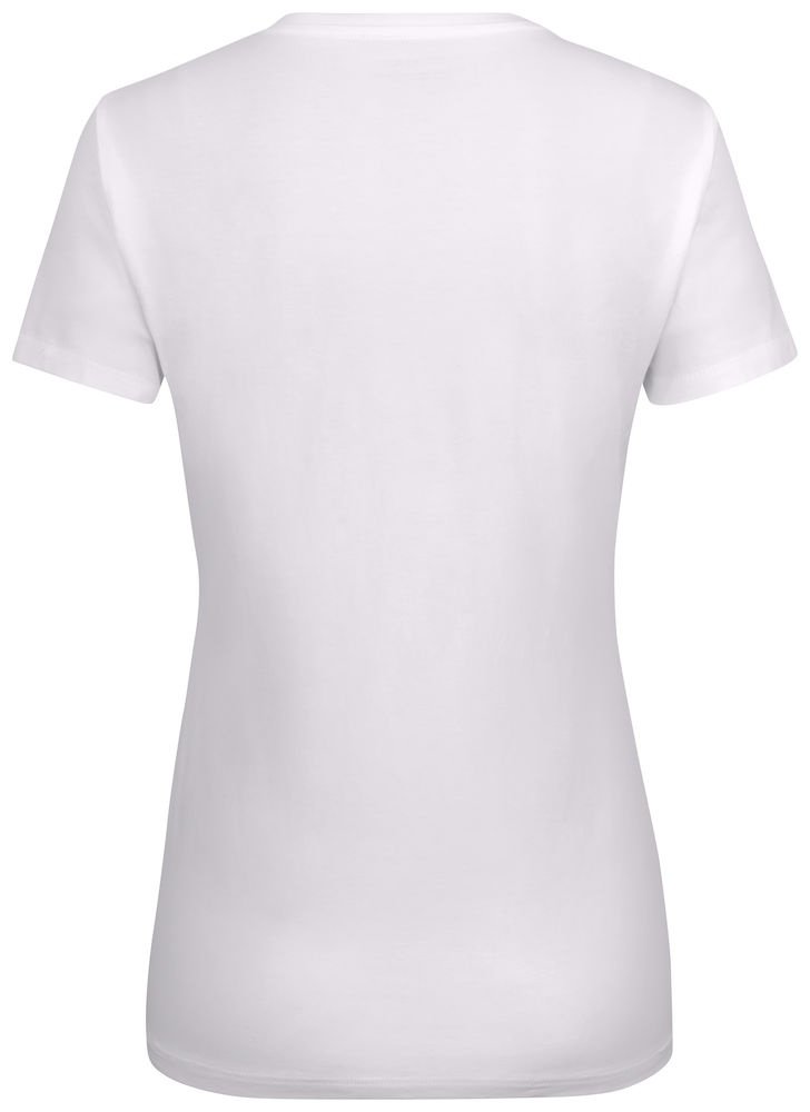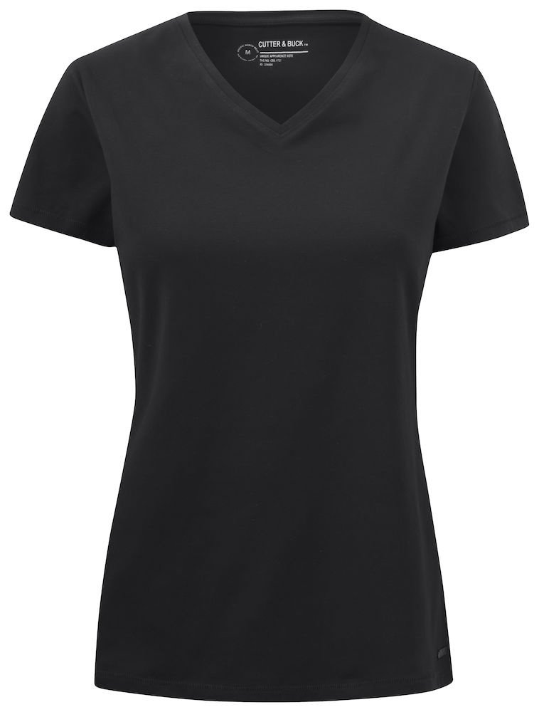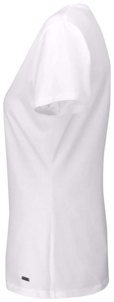Klasyczny T-shirt z dekoltem typu V do codziennego użytku. Elastyczny, miękki materiał i nowoczesny krój, ozdobiony małą metalową metką w dolnym rogu koszulki.