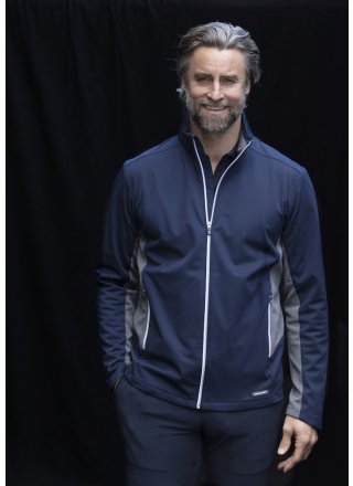Zaprezentuj światu swój silny charakter w nowym, wyrazistym softshellu. Panele boczne w szarych melanżowych kolorach przyciągają wzrok, a miękki, rozciągliwy materiał nie krępuje ruchów. Materiał CB WeatherTec™ zapewnia odporność na wszelkie niedogodności jakie napotkasz na swojej drodze zarówno w miejskim zgiełku, jak i na polu golfowym. Odblaskowy nadruk na panelach z tyłu kurtki zapewnia lepszą widoczność. Zamki błyskawiczne YKK®.