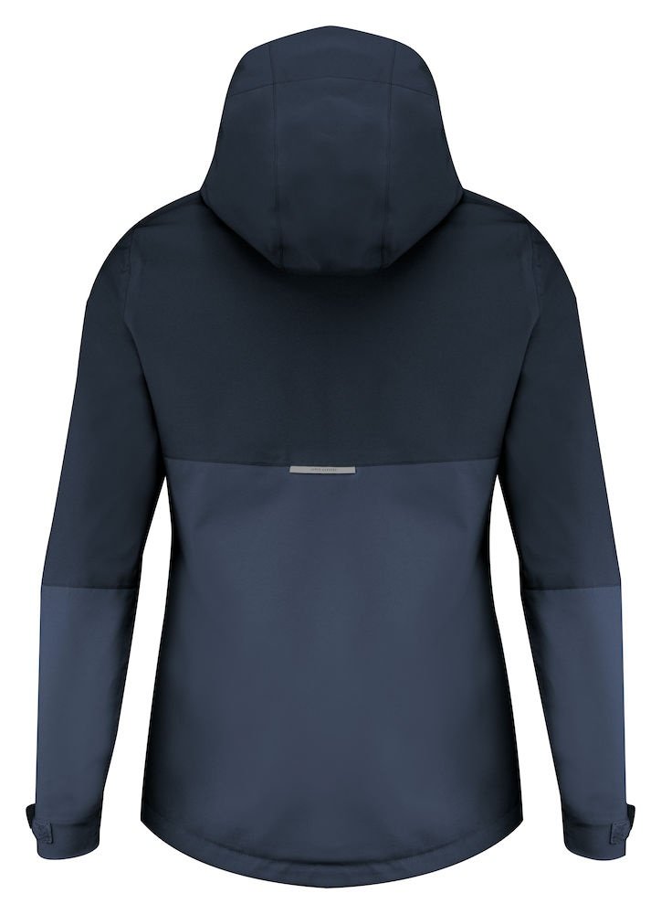Funkcjonalna, dwukolorowa kurtka typu shell z klejonymi szwami. Wodoodporny zamek z przodu oraz dwustronne nylonowe zamki przy bocznych kieszeniach. Rękawy regulowane na rzep. Siatka podszewka z wewnętrzną kieszenią. Odblaskowy element z tyłu kurtki. Kaptur i dół bluzy regulowany za pomocą elastycznego sznurka.