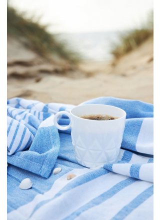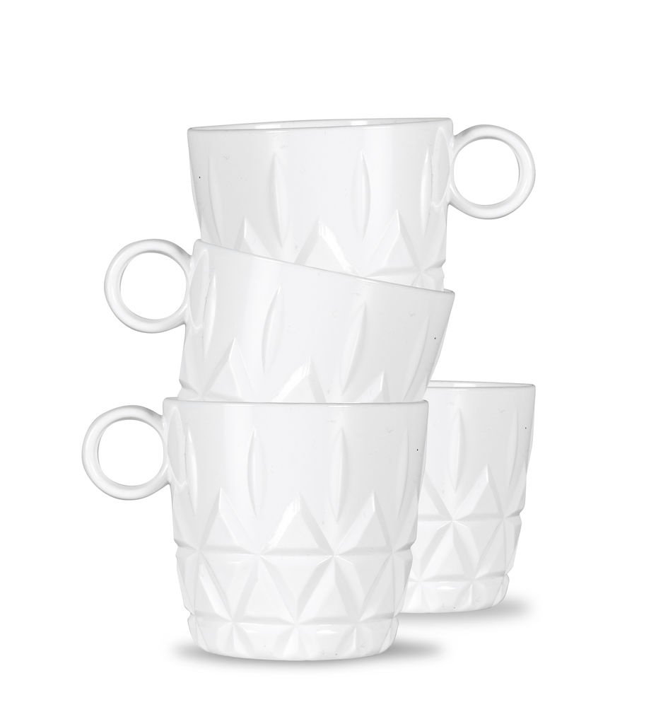 Ten wspaniały kubek do kawy jest wykonany z plastiku w kolorze białym/skorupki jajka we wzorze kryształu. To kubek, który uprzyjemni przerwę na kawę, gdziekolwiek zechcesz. Zabierz je na piknik, na plażę, na ogród, na taras, gdziekolwiek zapragniesz.