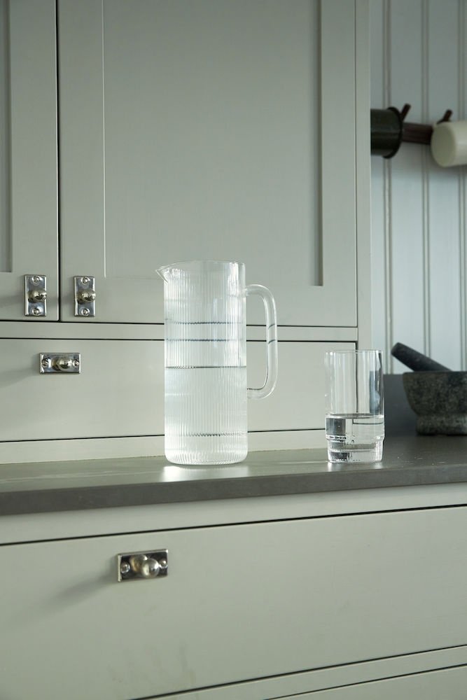 Ten szklany dzbanek to część naszej nowej szklanej kolekcji, które zajmą szczególne miejsce w twojej kuchni. Serię Glass charakteryzuje delikatne prążkowanie szkła, które obecne jest we wszystkich produktach w serii. Saga Glass może być mieszana z tym, co już masz a jednocześnie jest idealnym prezentem i pomysłem do kolekcjonowania.