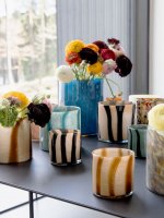Ręcznie robione świeczniki serii Calore Curve z fantastycznymi krzywiznami z kolorowego szkła. Każdy świecznik jest wyjątkowy. Dostępny w kilku rozmiarach. Kolory i paski różnią się w zależności od produktu, co oczywiście uwielbiamy!