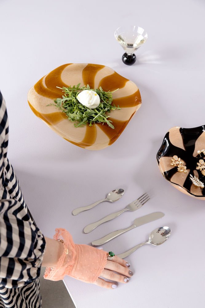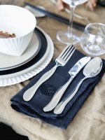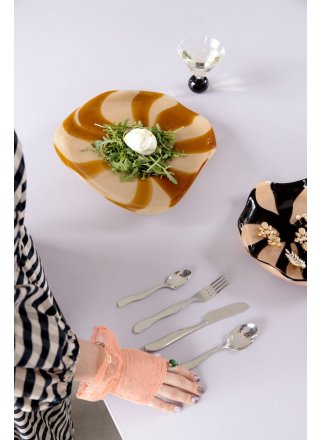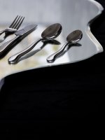 Nowe sztućce ze stali nierdzewnej inspirowane są ruchem fal. Okrągłe kształty dodają sztućcom miękkości i lekkości, która w przeciwieństwie do ostrych części tworzy fantastyczną dynamikę. Zestaw dostępny w opakowaniu prezentowym po 16 sztuk, tworząc zestaw dla 4 osób.