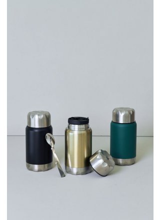 Mały, poręczny termos ze stali nierdzewnej z powłoką i małą składaną łyżką w pokrywie. Duża szyjka ułatwia czyszczenie i doskonale nadaje się do napełniania jedzeniem na piknik. Utrzymuje lodowatą żywność i napoje przez 24 godziny lub gorące przez 12 godzin.