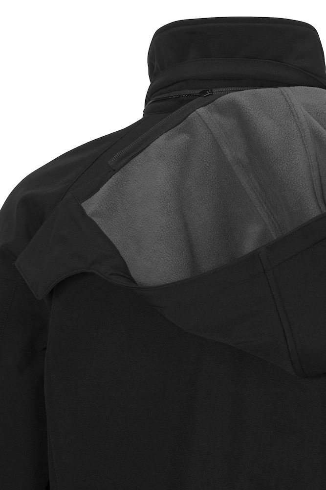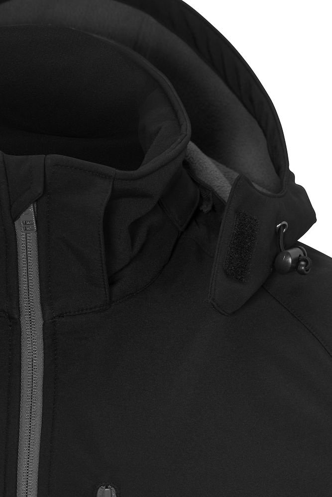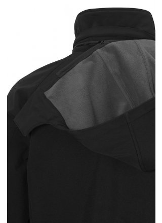 Softshell z kontrastowym polarem wewnątrz. Wodoodporna i wiatroodporna tkanina (WP 3000/ MVP 2000). Odpinany, regulowany kaptur. Mankiety regulowane na rzep. Elastyczny sznurek ze stoperem w kapturze i na dole kurtki. Jedna kieszeń na piersi, dwie kieszenie boczne, kieszeń wewnętrzna.