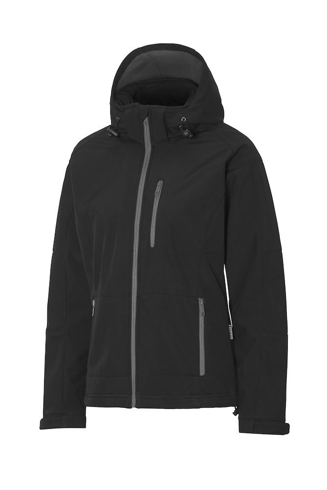 Softshell z kontrastowym polarem wewnątrz. Wodoodporna i wiatroodporna tkanina (WP 3000/ MVP 2000). Odpinany, regulowany kaptur. Mankiety regulowane na rzep. Elastyczny sznurek ze stoperem w kapturze i na dole kurtki. Jedna kieszeń na piersi, dwie kieszenie boczne, kieszeń wewnętrzna.