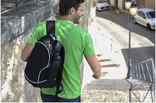 Funkcjonalny plecak sportowy w kontrastowych kolorach wykonany z sytnetycznej tkaniny