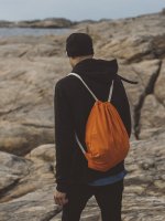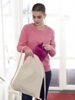 Torba sportowa z gładkiego płótna, sznurki do ściągania na samej górze w naturalnym, beżowym kolorze.Torba może służyć również jako plecak