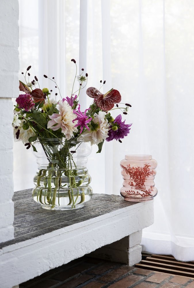 Trixibelle to wazon z miękkimi krzywiznami z przyciemnianego czerwonego szkła - piękne połączenie koloru i prostoty.