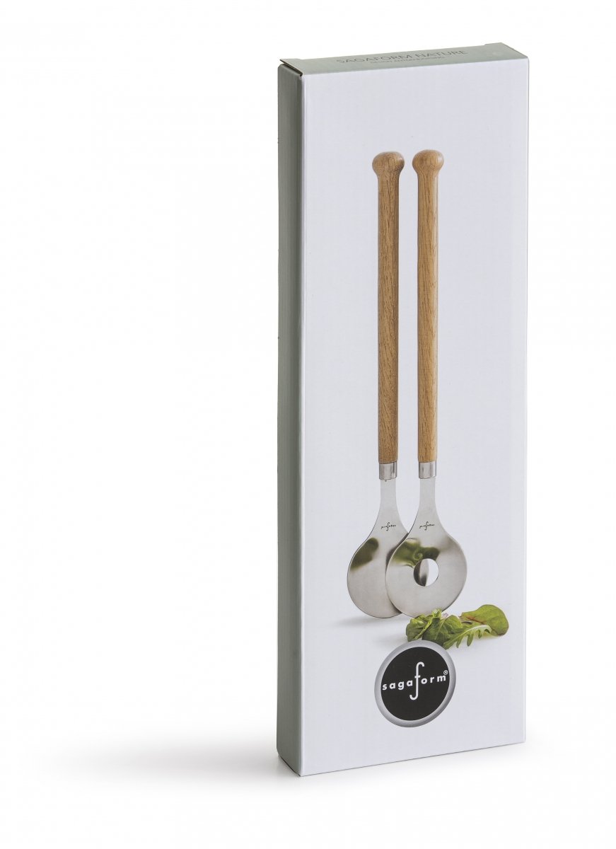 Stal nierdzewna z dębowym uchwytem. Stylowe przybory do sałatek o ponadczasowym designie. Uchwyty wykonane z litego drewna dębowego o wysokiej jakości. Nie zapomnij o regularnym olejowaniu uchwytów.
