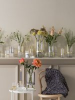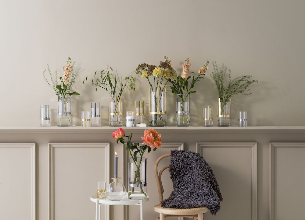 Największy z dostępnych wazonów Hold to wyjątkowy produkt zaprojektowany przez Pascala Charmolu. Istnieje możliwość dostosowania wysokości poruszając metalową oprawką w kolorze złotym, w górę lub w dół. Niezwykle przydatne w przypadku wysokich kwiatów. Metal/Ręcznie dmuchane szkło.