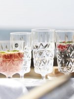 Piknikowe szklanki ze wzorem imitującym kryształ. Idealne do zimnych napojów.