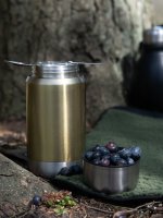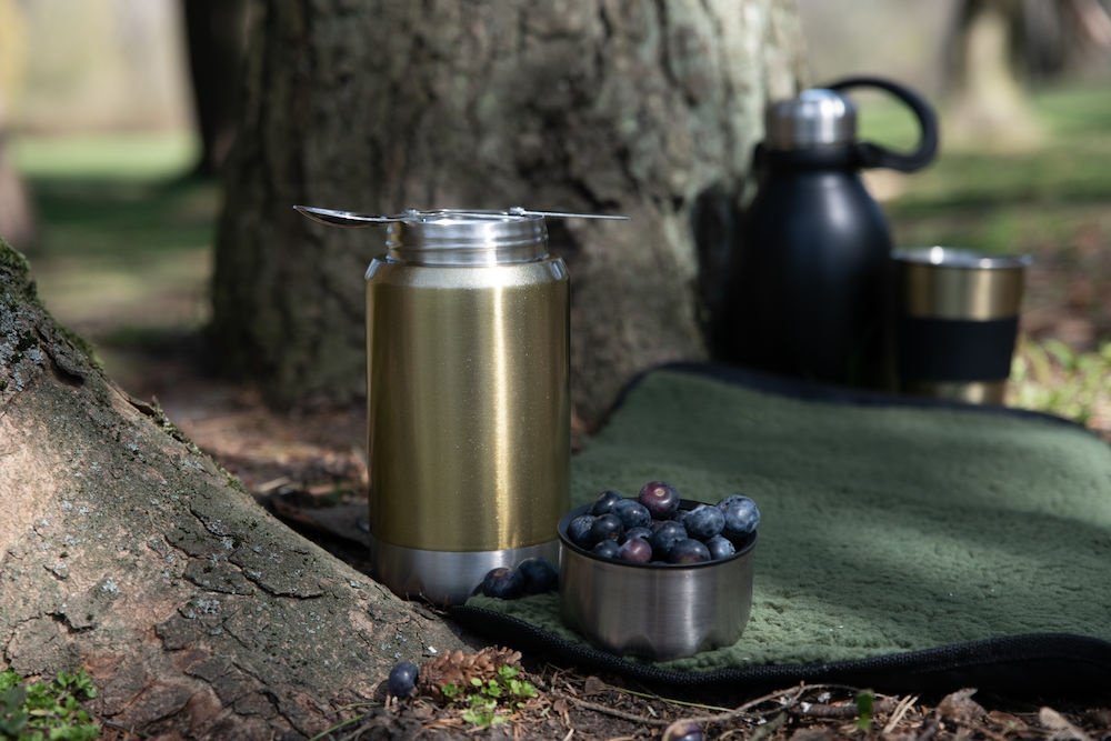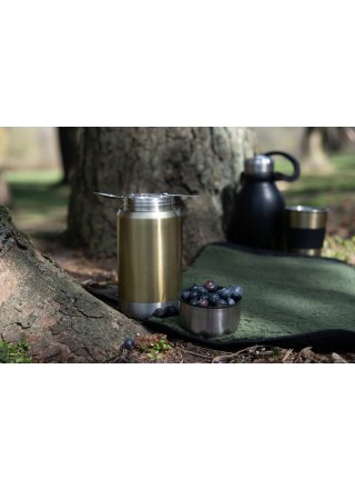 Mały, poręczny termos ze stali nierdzewnej z małą składaną łyżką w pokrywie. Duża szyjka ułatwia czyszczenie i doskonale nadaje się do napełniania jedzeniem na piknik. Utrzymuje lodowatą żywność i napoje przez 24 godziny lub gorące przez 12 godzin.
