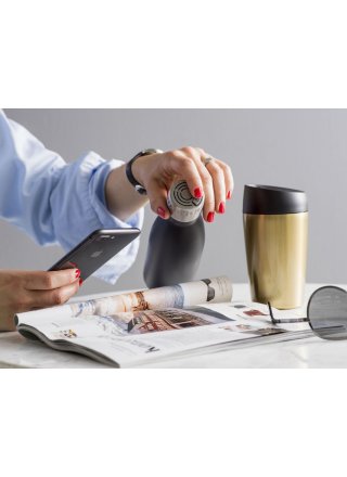 Praktyczny kubek z zamknięciem w pokrywce teraz w wersji mniejszej, pojemność 240 ml! Wciąż chroni napój przed wyciekaniem oraz utrzymuje napój ciepły przez długi czas! Plastik/Stal nierdzewna