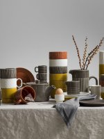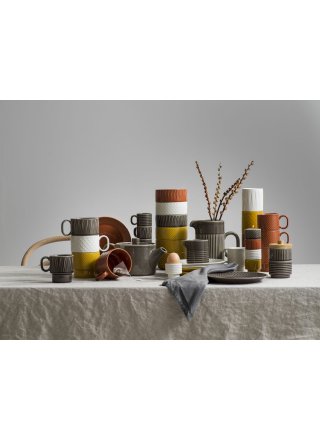 Kubek do herbaty z serii Coffee & More stworzonej w wyniku kooperacji Margot Barolo i Sagaform. Design kubka to nawiązanie do lat 70 ubiegłego wieku, do bezpośredniego, żartobliwego języka tamtych lat. Można myć w zmywarce oraz podgrzewać w mikrofalówce.