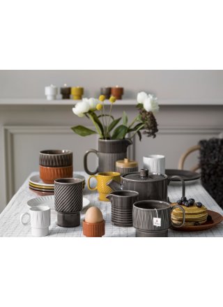 Kubek do herbaty z serii Coffee & More stworzonej w wyniku kooperacji Margot Barolo i Sagaform. Design kubka to nawiązanie do lat 70 ubiegłego wieku, do bezpośredniego, żartobliwego języka tamtych lat. Można myć w zmywarce oraz podgrzewać w mikrofalówce.