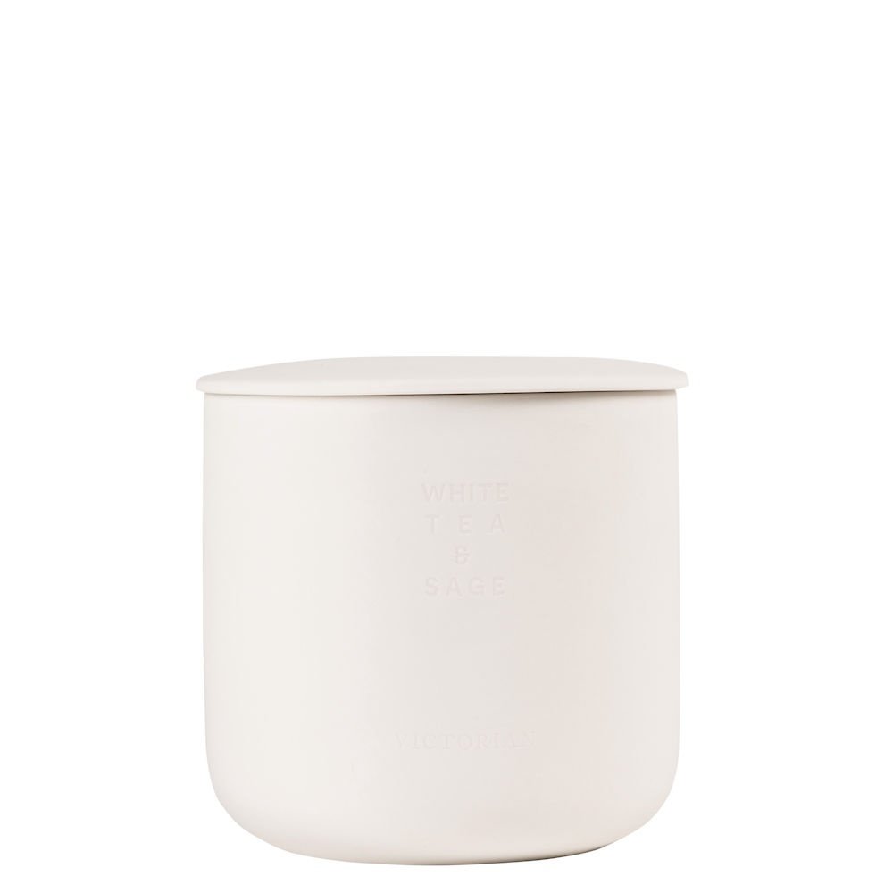 Stylowa świeca zapachowa w białej ceramice o świeżym zapachu białej herbaty i szałwii. Czas palenia 55h. Aby uzyskać bardziej satysfakcjonujące spalanie, przycinaj knot co 3 godziny.