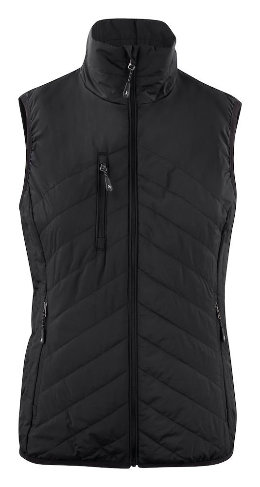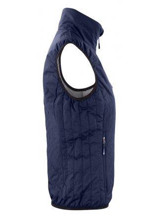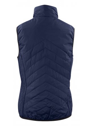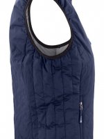 Pikowana lekka kamizelka. Na pełnej podszewce (w kontrastowym kolorze). Odwrócona taśma w zamkach błyskawicznych. Elastyczne sznurki na dole oraz rękawy z mankietami. Kamizelkę można zwinąć i spakować do wewnętrznej kieszeni.
