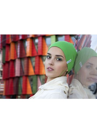 Czapka z połączenia materiałów jersey oraz elastan dla lepszego dopasowania. Dekoracyjne szwy overlock na górze dopasowane do koloru czapki. Czapka jest w wersji Unisex.