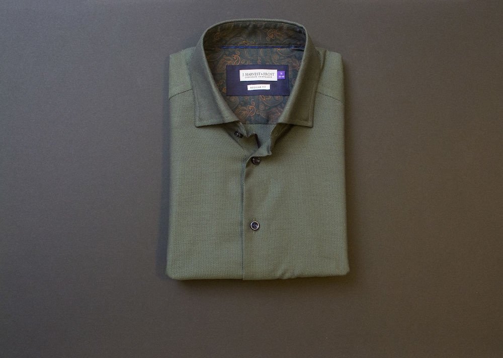 • kołnierz typu cut-away zapinany na guzik.