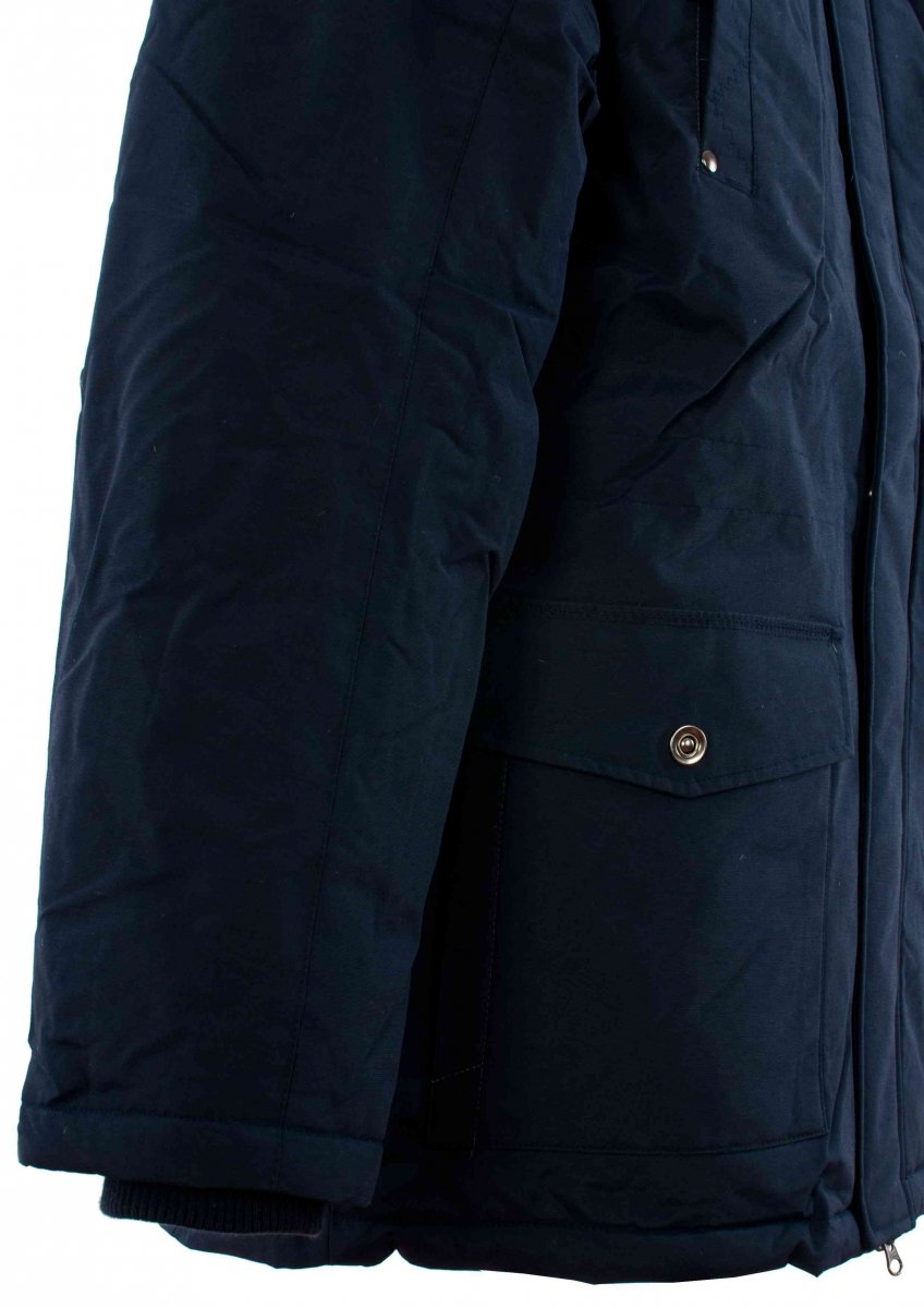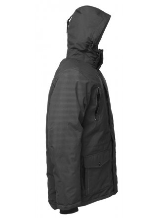 Kurtka typu parka na podszewce, wiatrodoporna i impregnowana (WP 3000/MWP 3000). Przedłuzony tył, ściagacz na wysokości talii. Rękawy wykończone mankietem. Zamek ukryty w listwie z zatrzaskami. Dwie zewnętrzne kieszenie, dwie kieszenie wewnętrzne.Dwie kieszenie skośne z wodoodpornym zamkiem. Odczepiany kaptur z możliwością dopasowania.