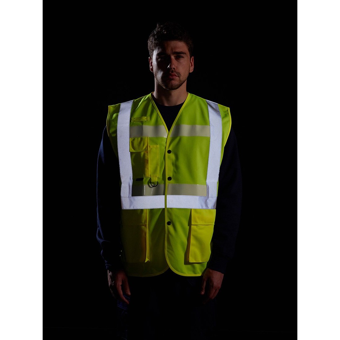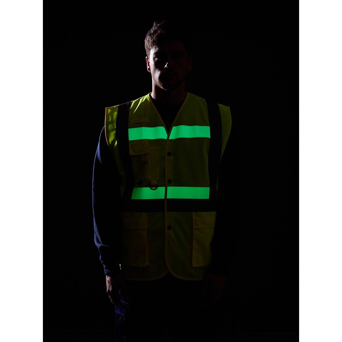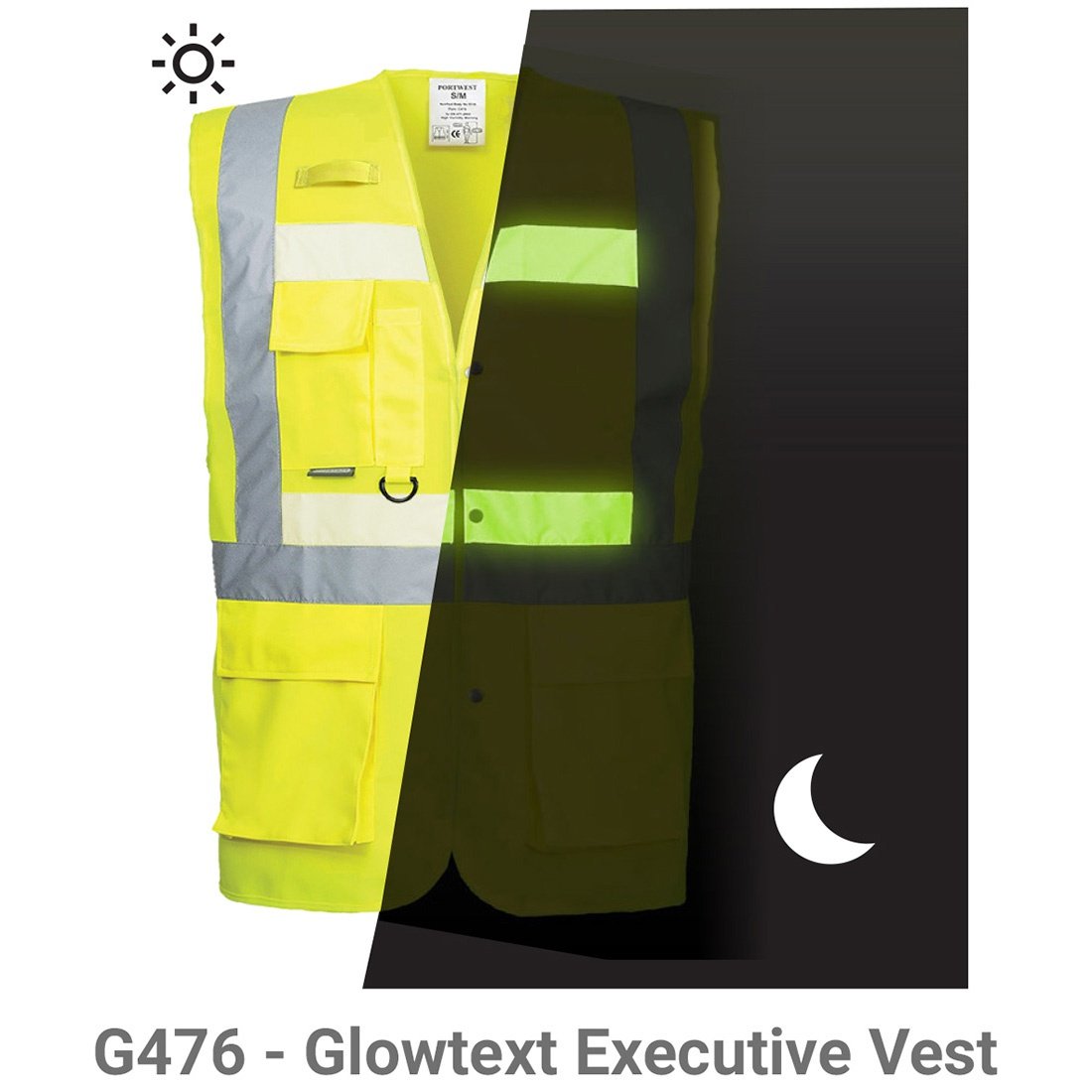 Rewolucyjna kamizelka ostrzegawcza Portwest Glowtex™ Triple Technology. Zastosowano w niej taśmę ostrzegawczą emitującą światło w ciemności. Gwarantuje to najwyższy poziom ochrony użytkownika w każdych warunkach pracy. Materiał tła oferuje ochronę w czasie dnia. Taśma ostrzegawcza HiVisTex™ zapewnia widoczność w świetle reflektorów. Innowacyjna taśma Glowtex™ emituje światło w kompletnej ciemności.Certyfikowano na zgodność z CE