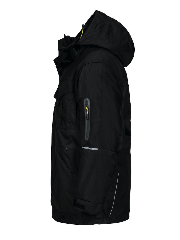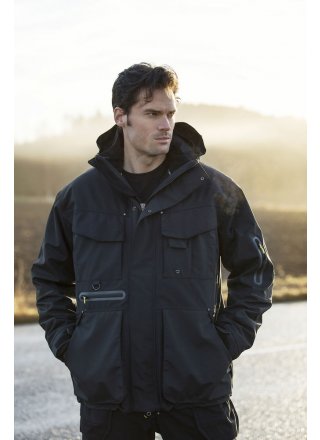 Wiatroodporna i wodoodporna kurtka z kapturem (parka), który można podwinąć lub odpiąć. Możliwość regulacji na dole za pomocą sznurka ściągającego. Dwie kieszenie z patką na piersi, lewa kieszeń z miejscem na telefon i długopisy. Dwie laminowane kieszenie z wodoodpornym zamkiem błyskawicznym, jedna znajduje się na lewym rękawie, a druga poniżej kieszeni na prawej piersi. Kieszenie wyściełane polarem z patką i zamkiem. Przedni zamek błyskawiczny działa w dwie strony, zakryty podwójną klapą. Możliwość regulowania mankietów i odpinania pikowanej podszewki/kurtki, które mogą być używane oddzielnie.