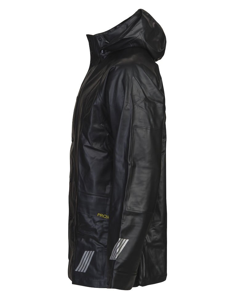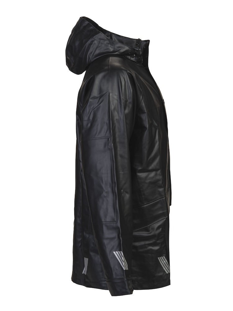 Kurtka posiada specjalnie szyte i klejone szwy. Odczepiany i regulowany kaptur z zatrzaskami. Kieszenie z przodu z klapami. Odblaski na końcach rękawów i na dole kurtki. Kurtka jest elastyczna w pasie.